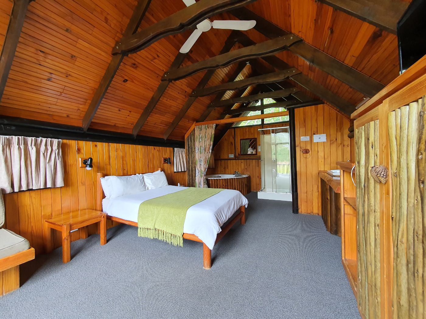 Guests stay in cozy log cabins, each with its own private deck overlooking lush gardens or forested slopes. Days can be spent exploring nearby hiking trails, relaxing at the spa, or simply unwinding in the jacuzzi while listening to the sounds of nature. Evenings bring hearty meals and fireside warmth, creating a homely atmosphere that regular visitors treasure.